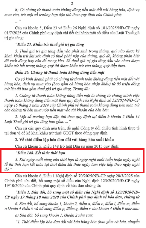 Công văn số 3496 hướng dẫn về thời điểm xuất hóa đơn vào cuối tuần