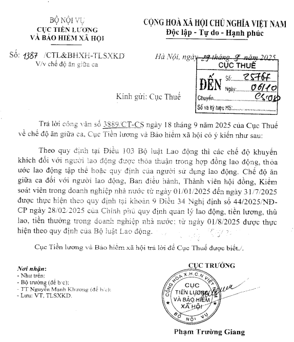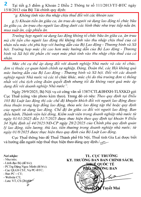 Công văn 5106 về mức tiền ăn trưa, tiền ăn giữa ca khi xác định thuế TNCN 2025